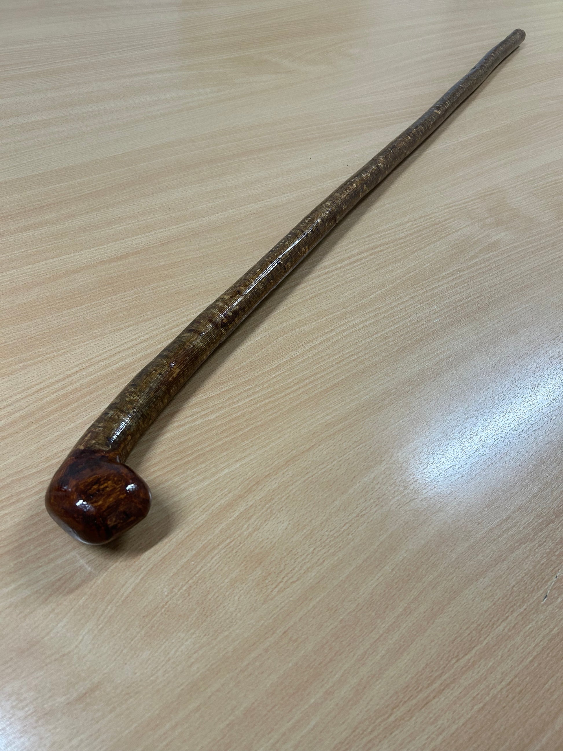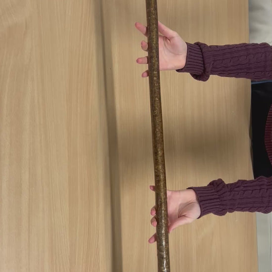Crafted from a single piece of Irish hazel, this unique walking stick features a small yet sturdy handle that sits comfortably in the hand. The natural head is finished with a clear varnish, showcasing the wood’s soft grain, while the smooth shaft retains its bark and has been lightly varnished to preserve its rich tone. Though it’s a lighter stick, it’s quite thick and offers excellent support for daily walks or scenic hikes. The exact stick shown in the photo is the one you will receive. If you'd like it shortened, just let us know how much to trim in the order notes at checkout and we’ll customise it for you.