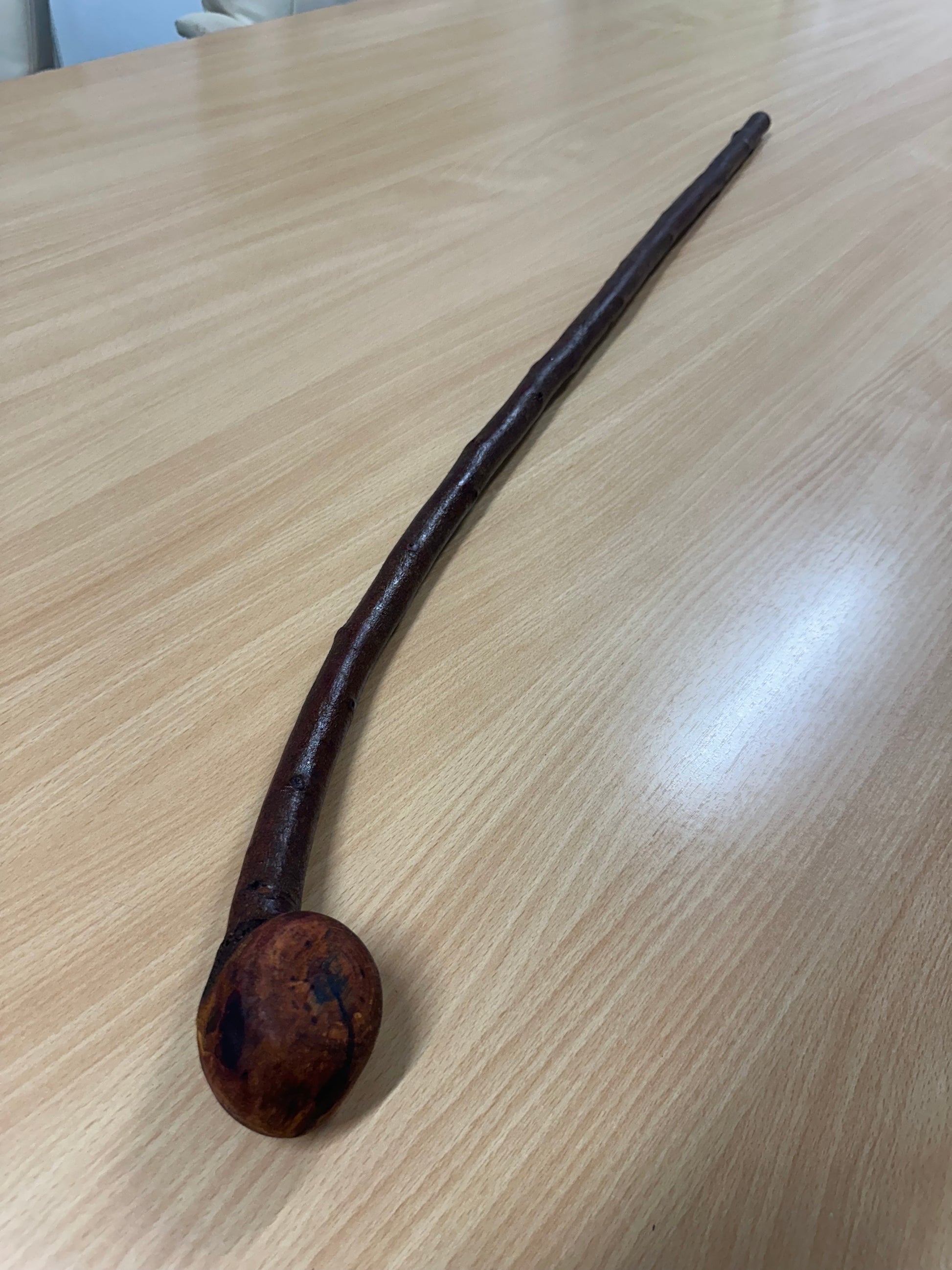 This lightweight Blackthorn stick features a bumpy, knuckled shaft and a larger rounded head that fits perfectly in the hand. The thin shaft makes it easy to carry, while the textured surface gives it a classic, rustic Irish feel. It's more suited for hiking or as a traditional accessory than for daily walking support. As always, the exact stick you see is the one you'll receive. If you'd like it shortened, just let us know how much to trim in the order notes at checkout.