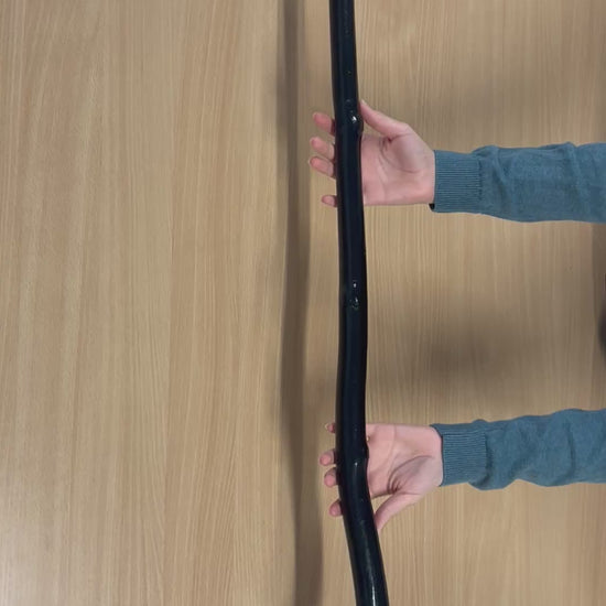 This striking walking stick is handcrafted from strong Irish whitethorn and features a comfortable rounded head. The shaft has a unique angled detail near the top, giving it extra character and making it ideal for both walking support and as a distinctive accessory. Painted black with a smooth varnish, this stick combines tradition with a bold modern finish.