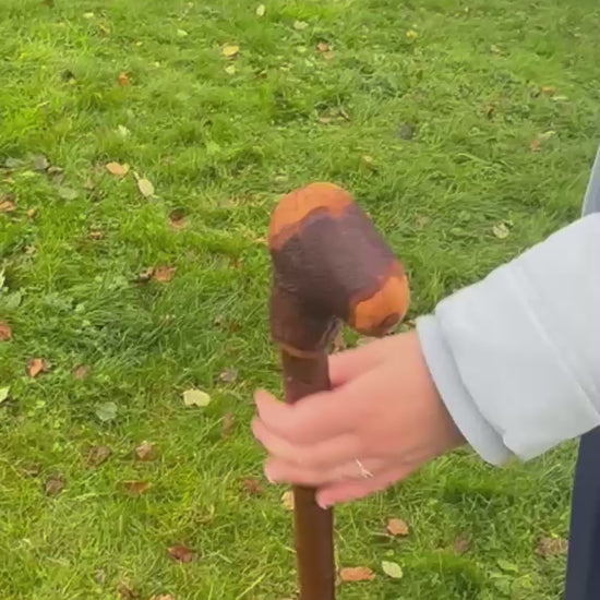 This one-of-a-kind Irish blackthorn walking stick features a characteristic round knob handle that fits naturally in the palm — perfect for walking support or long hikes. The shaft is full of rugged blackthorn charm with a bumpy texture and a slight natural twist just below the handle, giving it real personality. At 103 cm (40.6 inches), it offers a solid and comfortable length. The exact stick shown in the photo is the one you will receive. If you’d like it shortened, simply let us know how much to trim in the order notes at checkout and we’ll customise it for you.