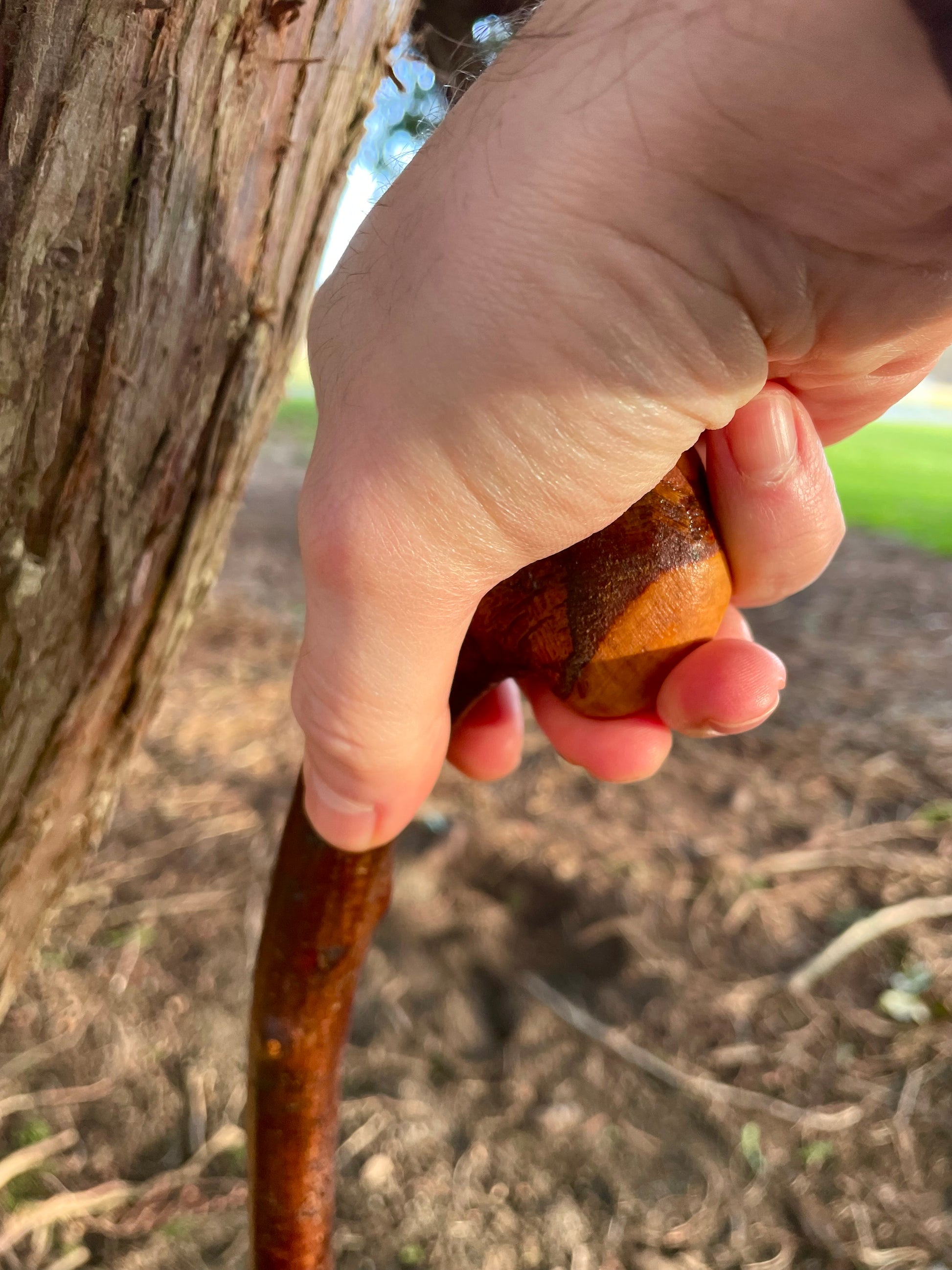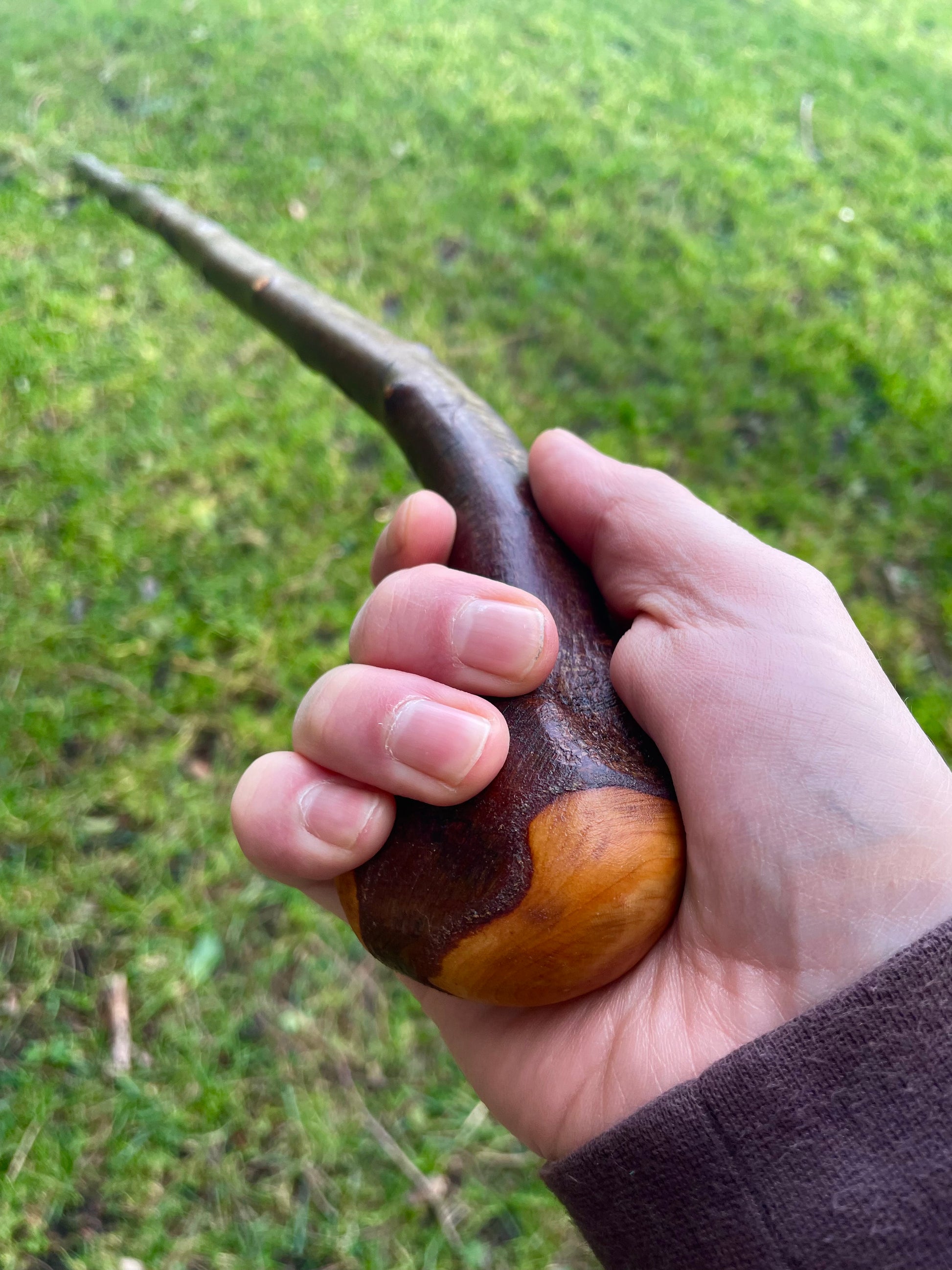 Irish blackthorn stick with a rounded knob handle, offering a solid grip and classic Shillelagh style. A true Irish original, award winning Irish stick craft.