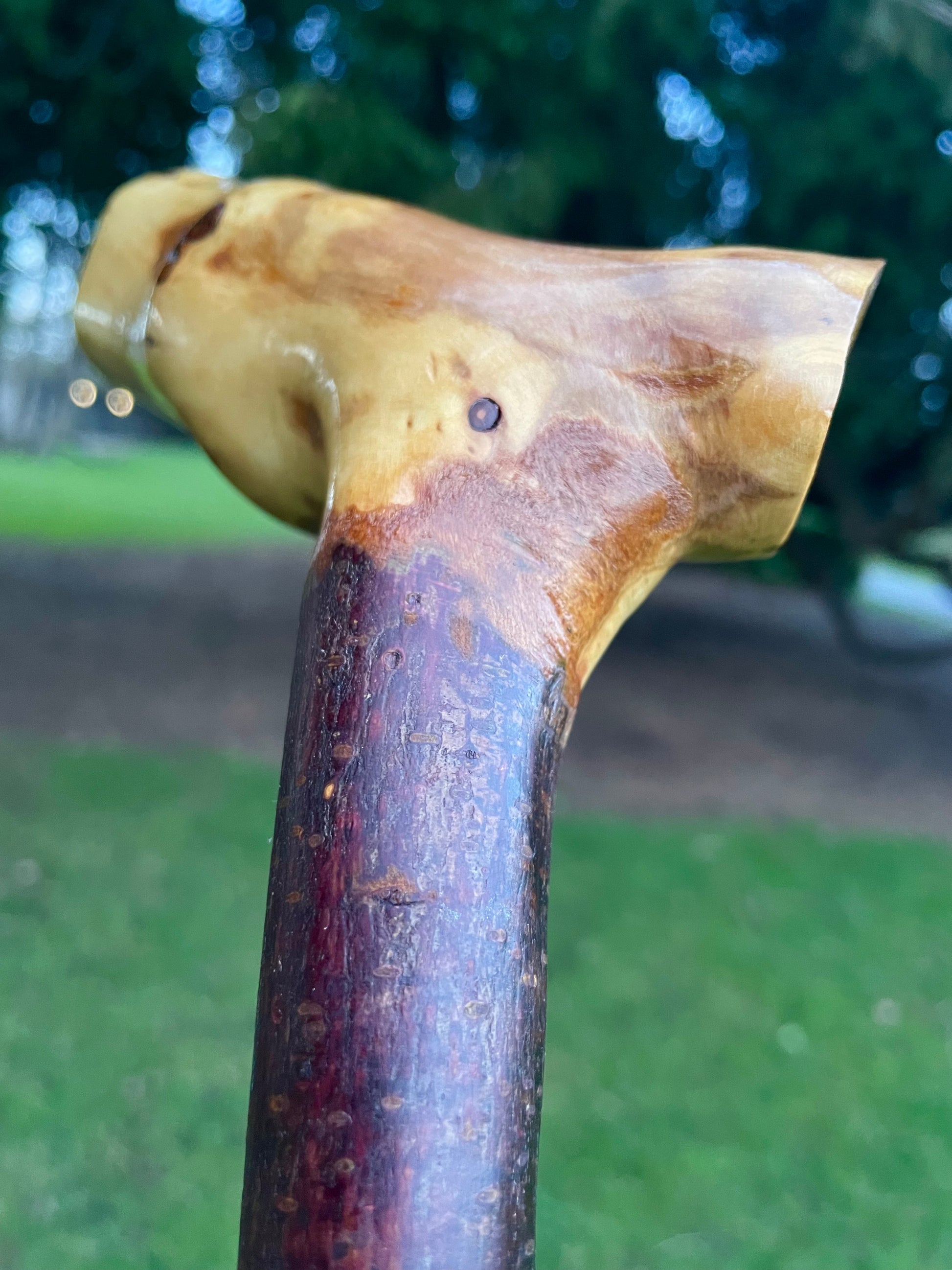 Irish blackthorn walking stick with a specially shaped handle for comfort and daily use. Durable and handcrafted, award winning Irish stick craft.