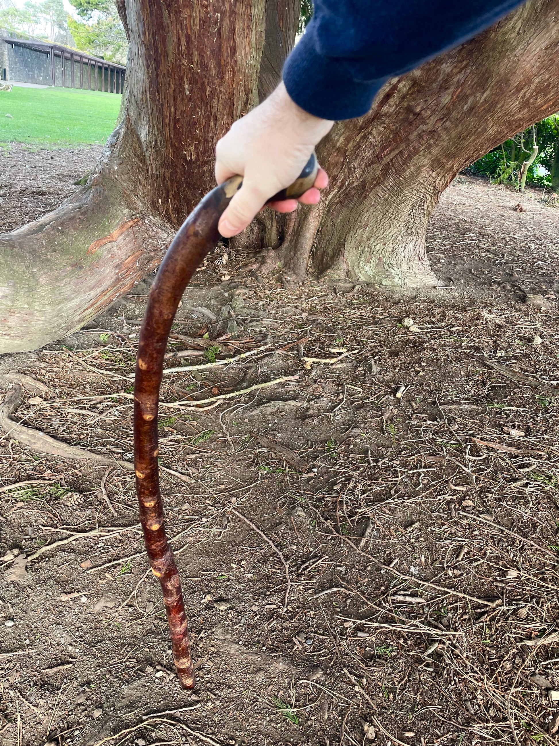 Classic Irish blackthorn stick with a natural curved handle for comfort and grip. Handcrafted with care, award winning Irish stick craft.