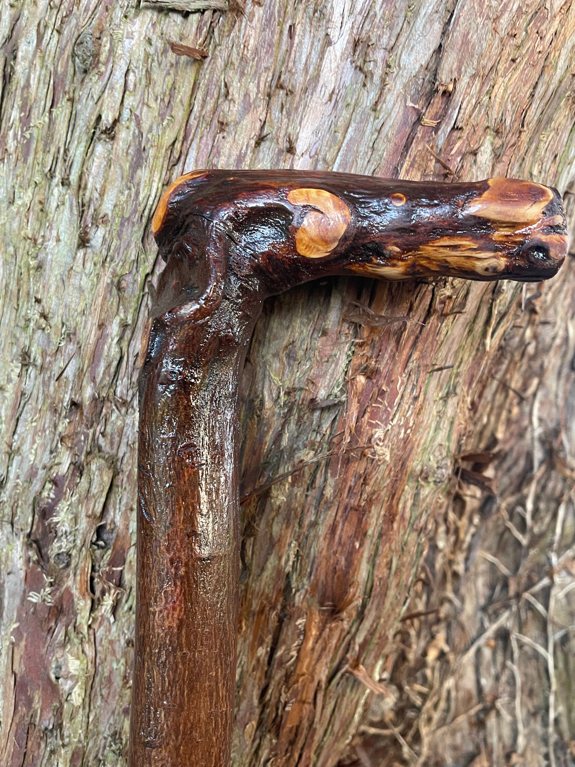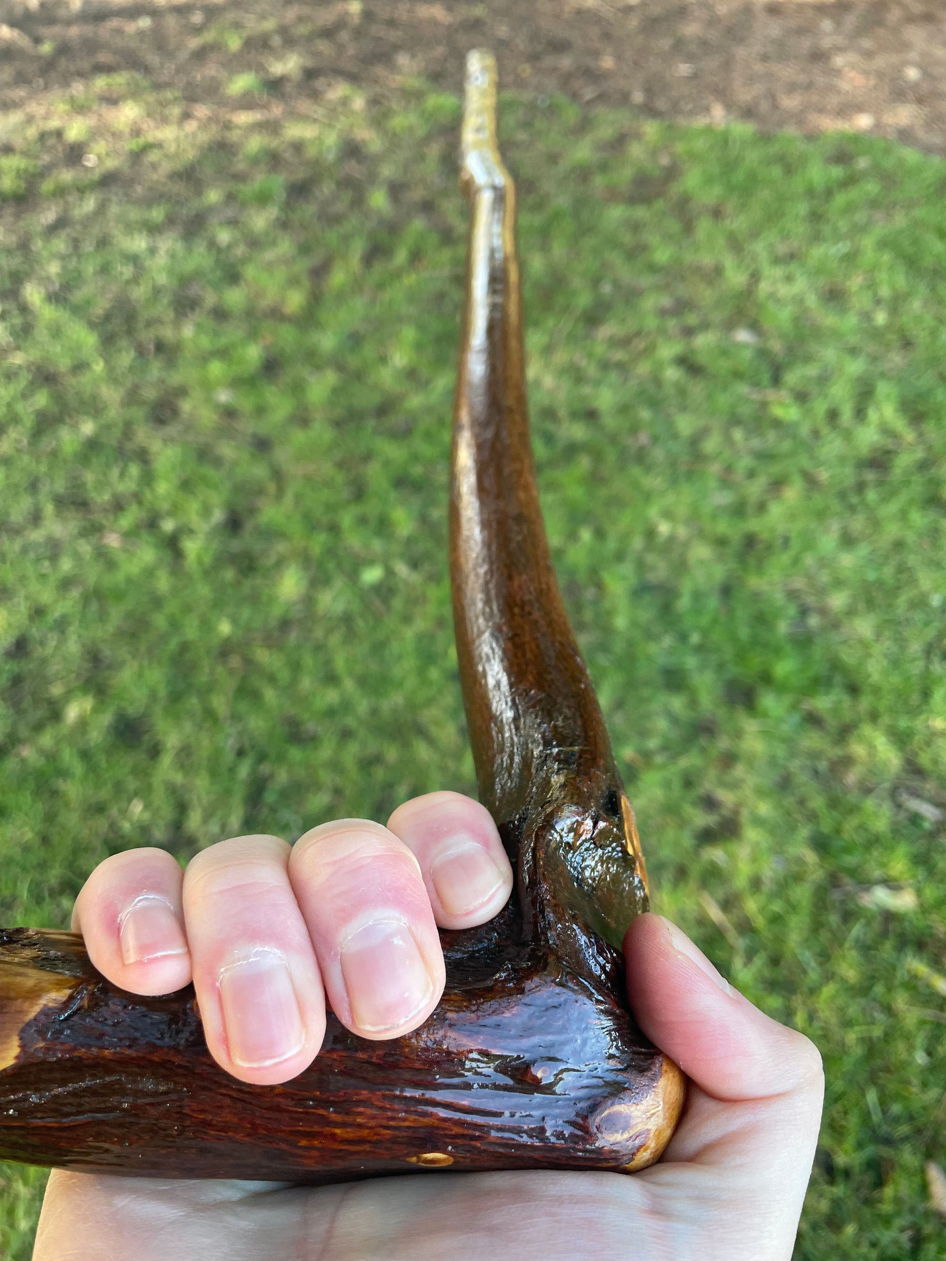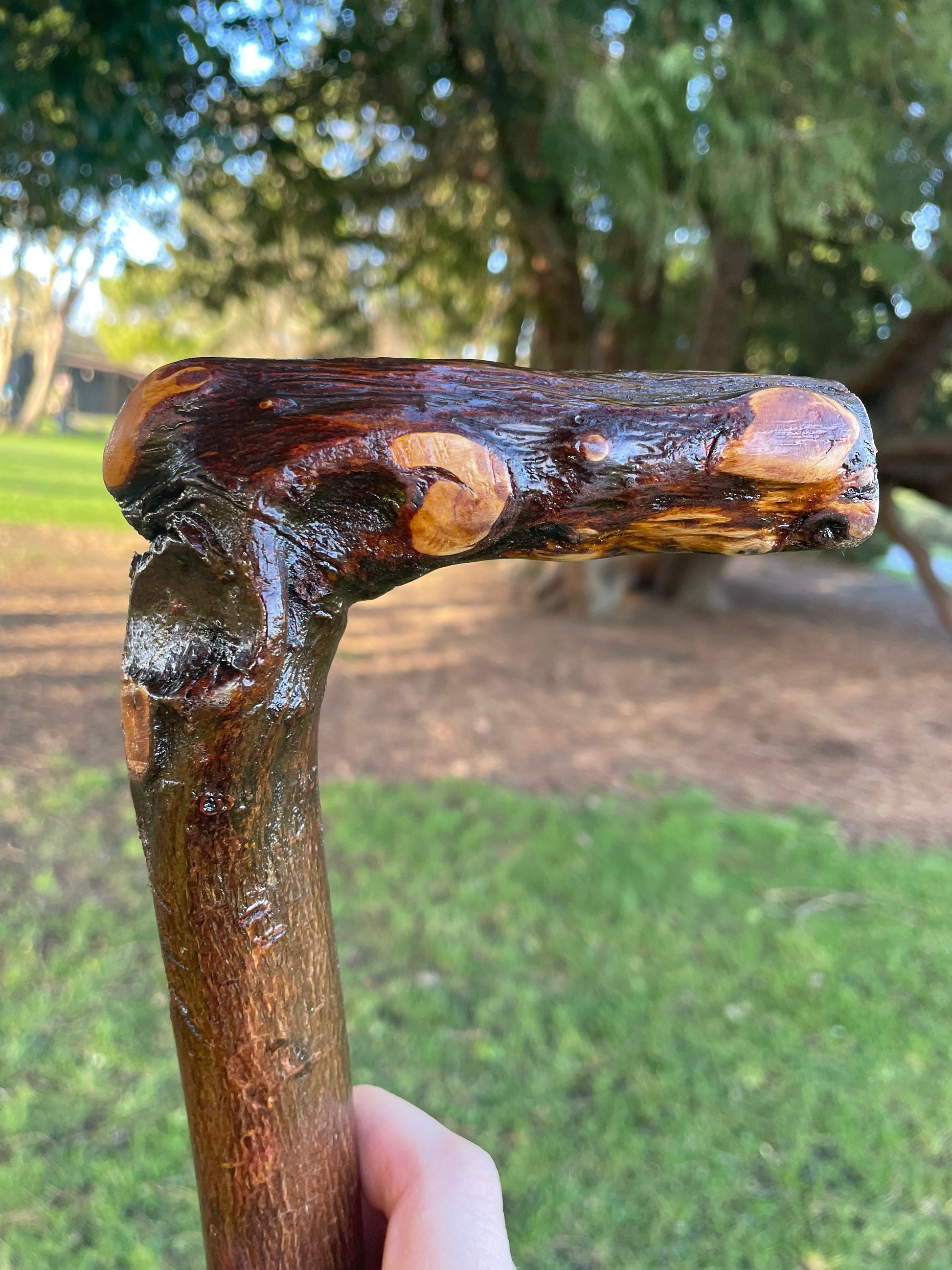 Traditional Irish blackthorn stick with an L-shaped handle for firm, practical grip. Strong, unique, and full of character, award winning Irish stick craft.