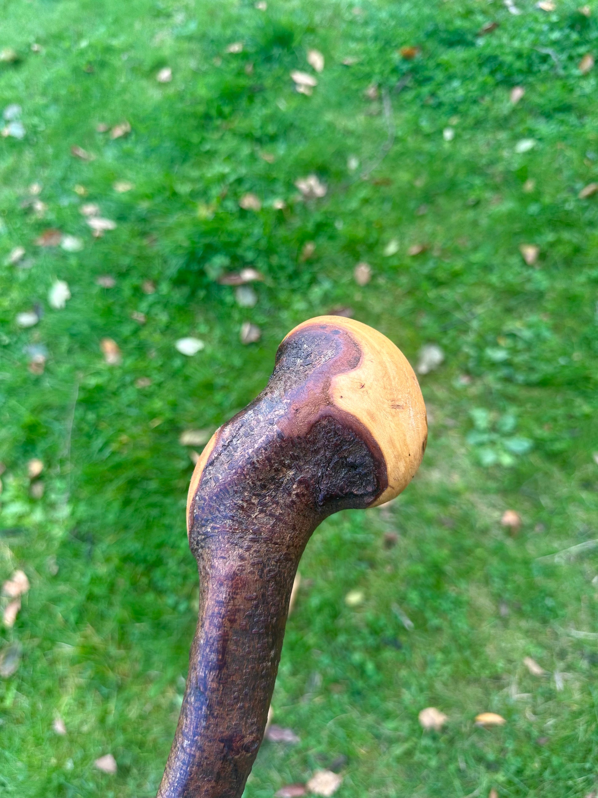 Blackthorn Walking Stick with Round Handle and Natural Dent - 100 cm / 39 inches