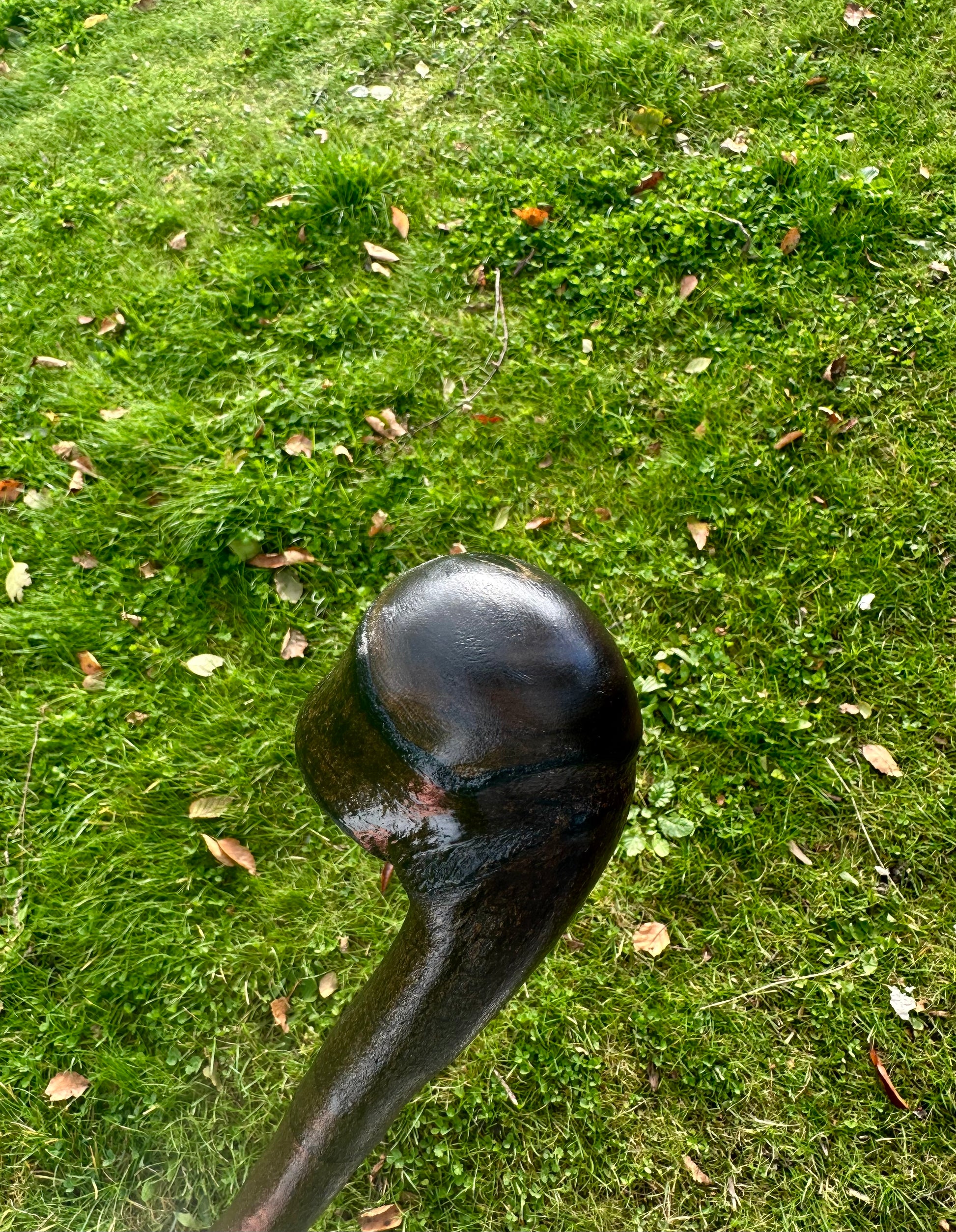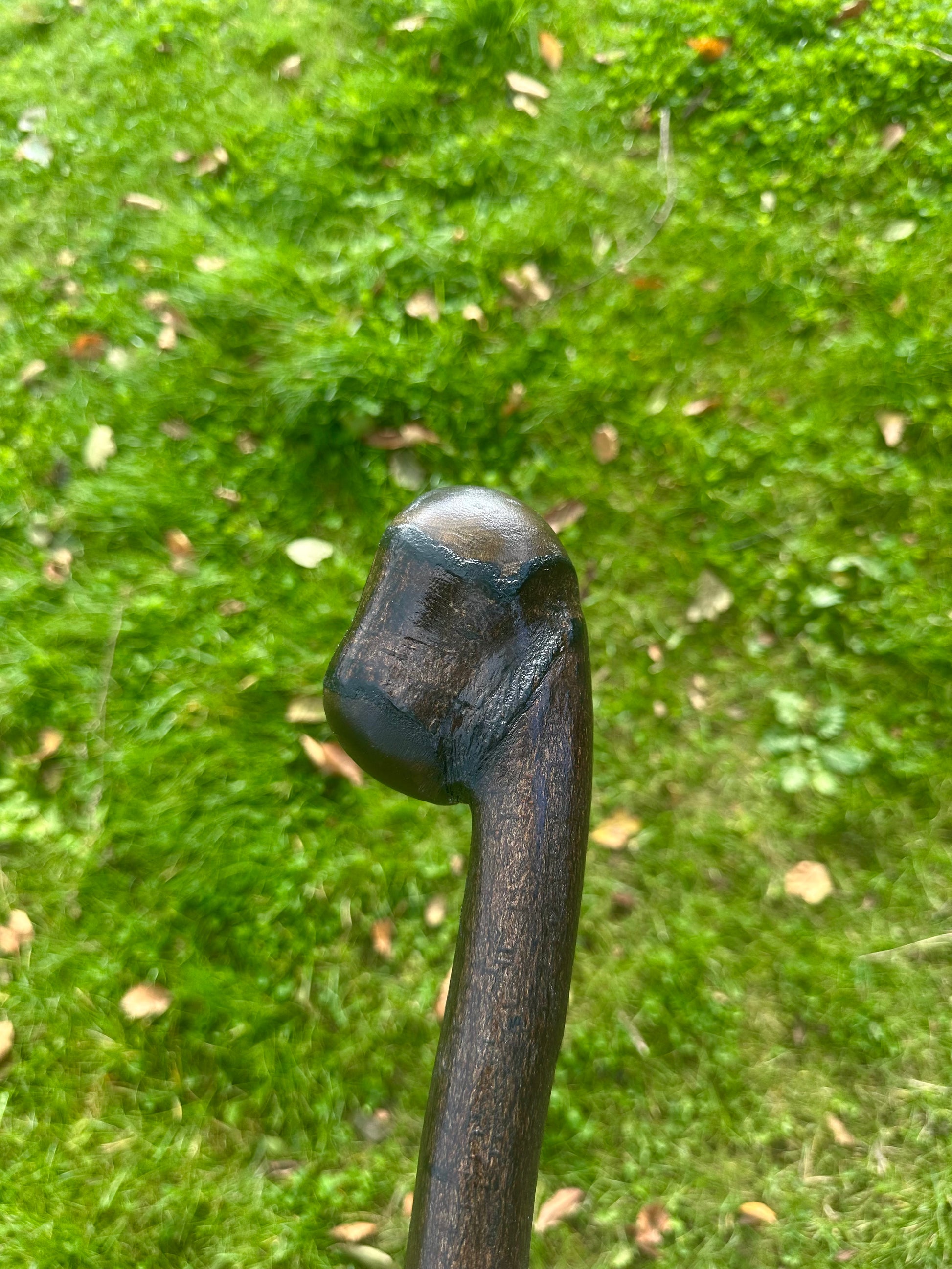 This one-of-a-kind Irish blackthorn walking stick features a rounded knob handle and a sleek black painted finish that highlights the natural form of the wood. At 105 cm (41 inches), it offers a bit of extra height while maintaining balance and style. The stick shown in the photo is exactly the one you will receive. If you'd like it shortened, just let us know how much to trim in the order notes at checkout and we’ll customise it for you.