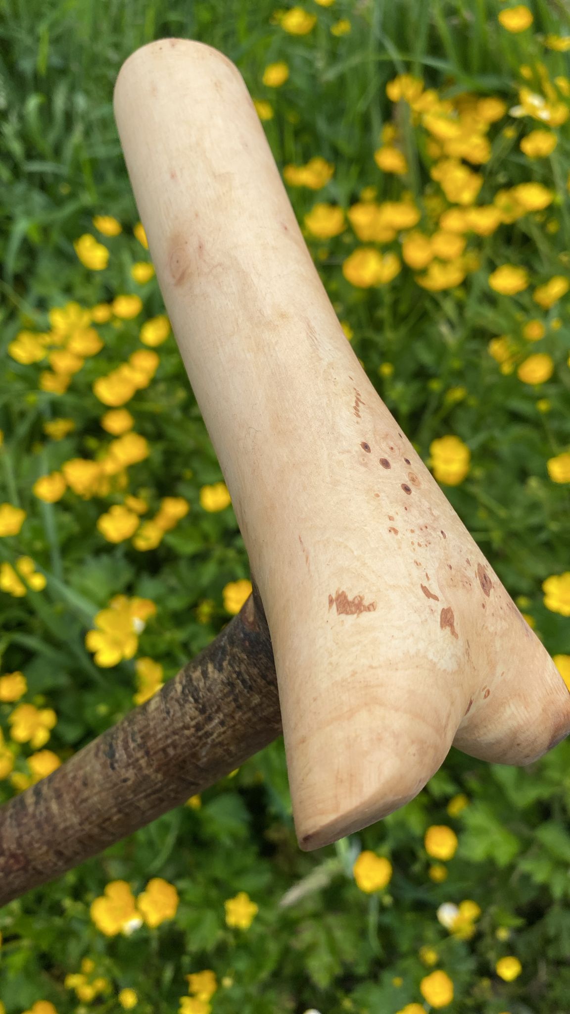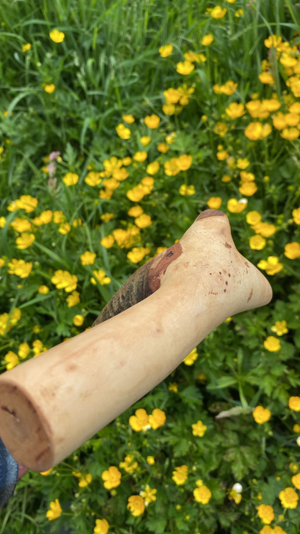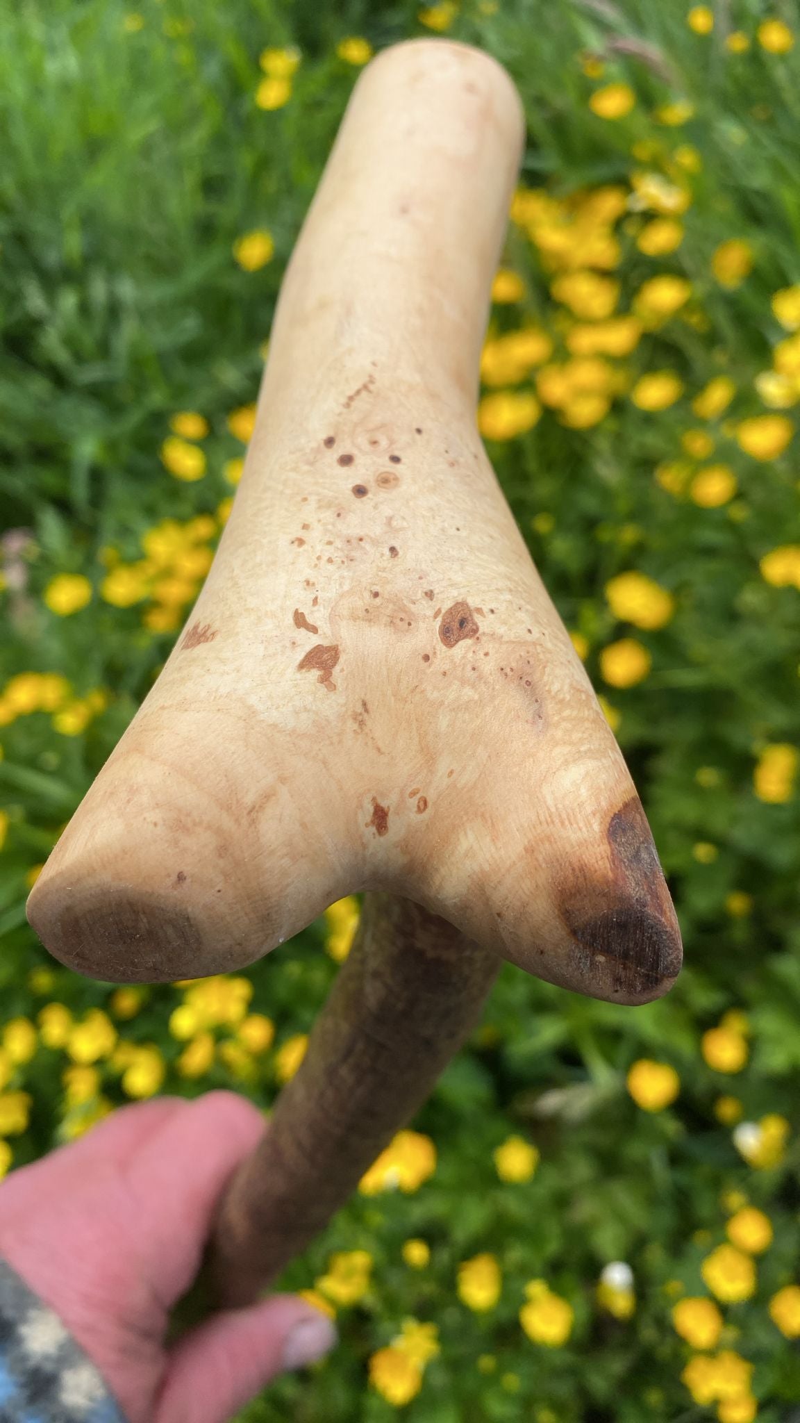 Strong Irish blackthorn hiking stick with a large L-shaped handle for firm grip and bold style. Made for comfort, award winning Irish stick craft.