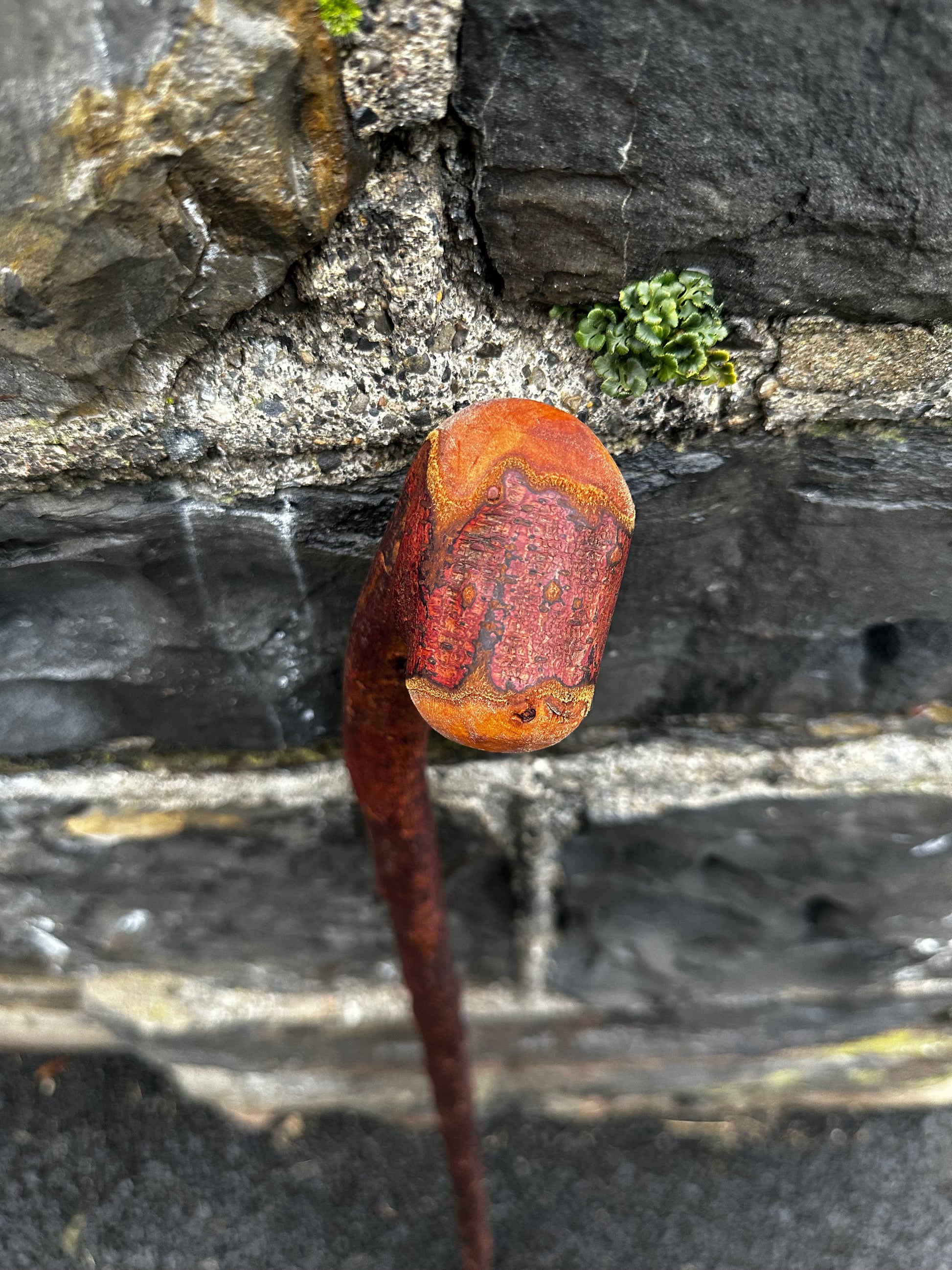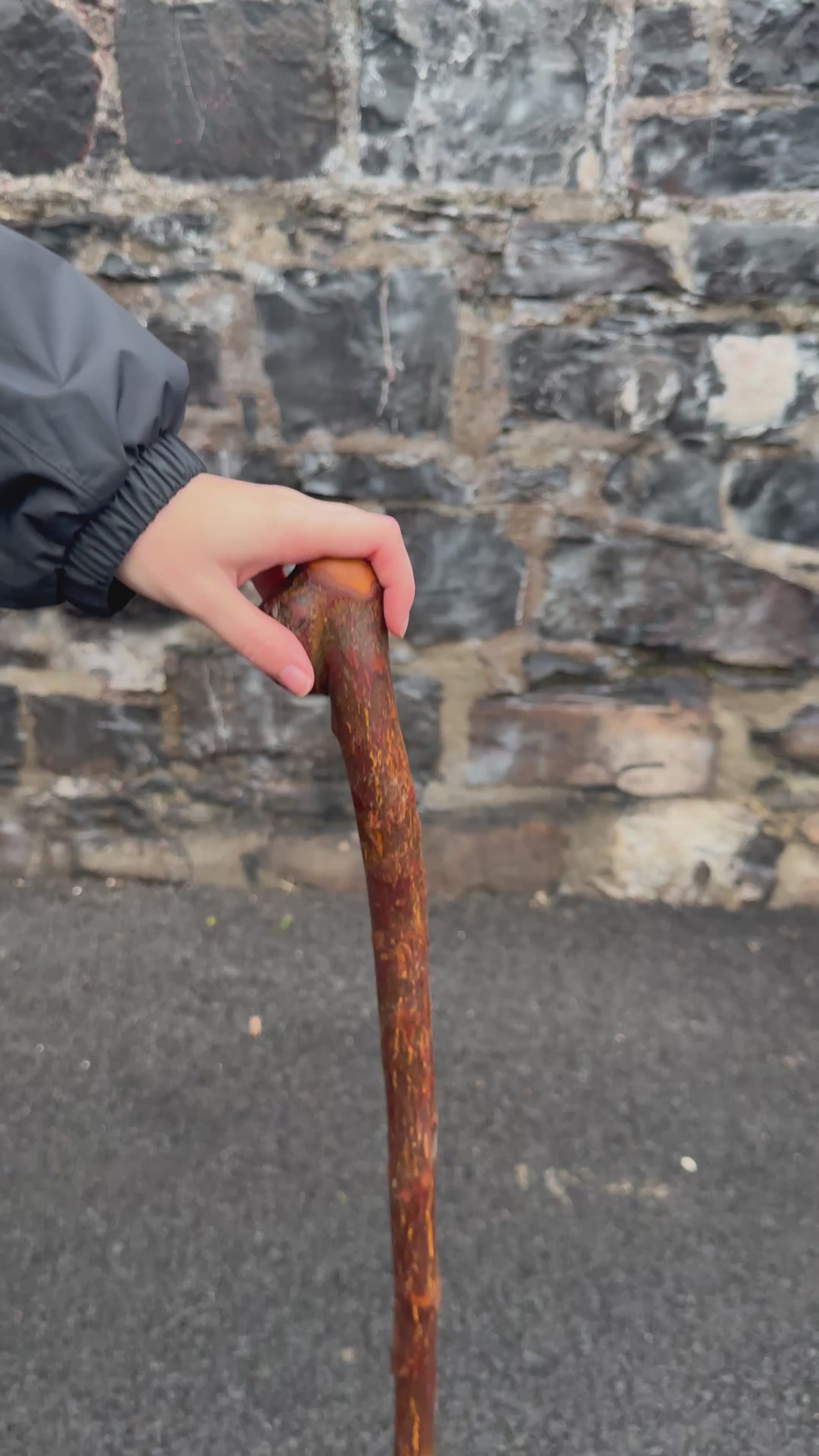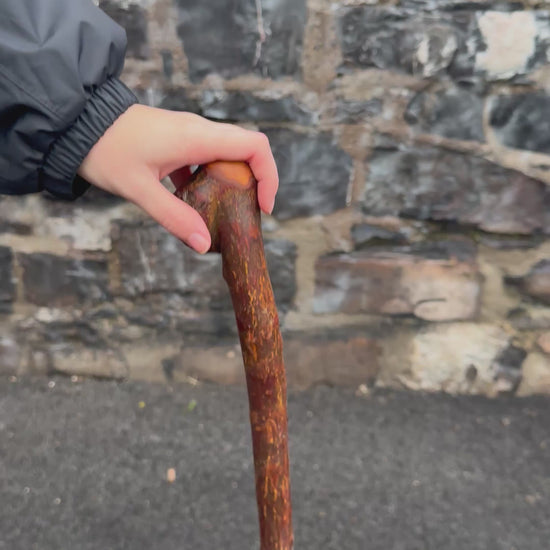 This is a rustic, raw Irish Blackthorn stick with a strong natural shaft and a leaning-over head that makes it ideal for hiking. The head shape gives a steady, comfortable grip whether you’re moving over rough ground or using it as a support while standing. The shaft keeps its wild Blackthorn character, full of rugged texture and natural bumps. Finished with boiled linseed oil, it has a tough, protective sheen that highlights the wood’s natural beauty. At 105 cm and 360 grams, it’s light enough for long walks but strong enough to rely on. As always, you’ll receive the exact stick shown in the photo, and if you need the height adjusted, just leave your preferred length in the order notes at checkout.