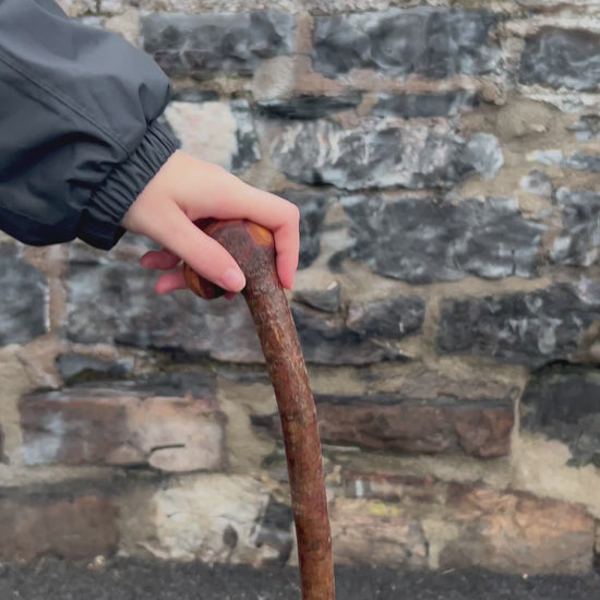This Blackthorn walking stick comes with a small knob head that fits naturally into the hand, offering a firm and comfortable grip. The shaft keeps classic Blackthorn character, complete with bumps and rugged texture. It’s finished with boiled linseed oil, giving it solid protection against moisture while keeping the natural look of the wood intact. At 94 cm and just 270 grams, it’s a light, easy-to-carry stick for walking or hiking. As always, you’ll receive the exact stick shown in the photo, and if you need it cut to a custom height, simply leave your preferred measurement in the order notes at checkout.