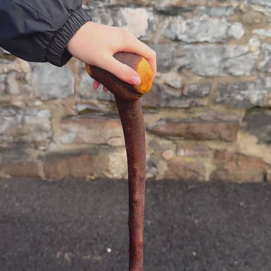 This is a tidy little Blackthorn knob stick with a well-shaped handle that fits comfortably in the hand. The shaft has a rugged, bumpy, must-be Blackthorn texture, full of natural character and strength. Finished with boiled linseed oil, it’s protected from the elements while keeping its raw, traditional look. At 97 cm and 450 grams, it’s a solid, dependable walking stick with the right amount of weight and grip. As always, you’ll receive the exact stick shown in the photo, and if you'd like it shortened, just leave your preferred length in the order notes at checkout.