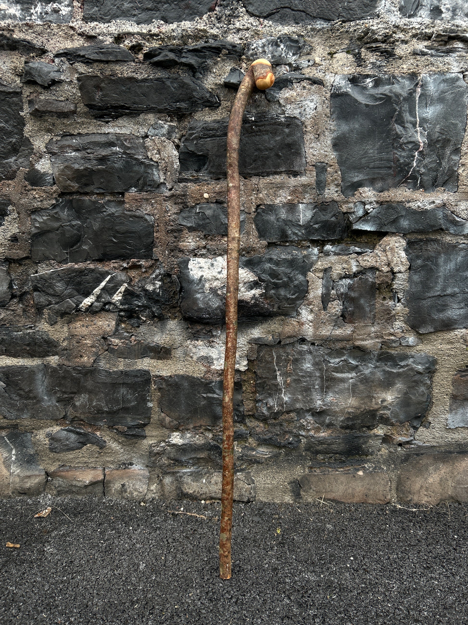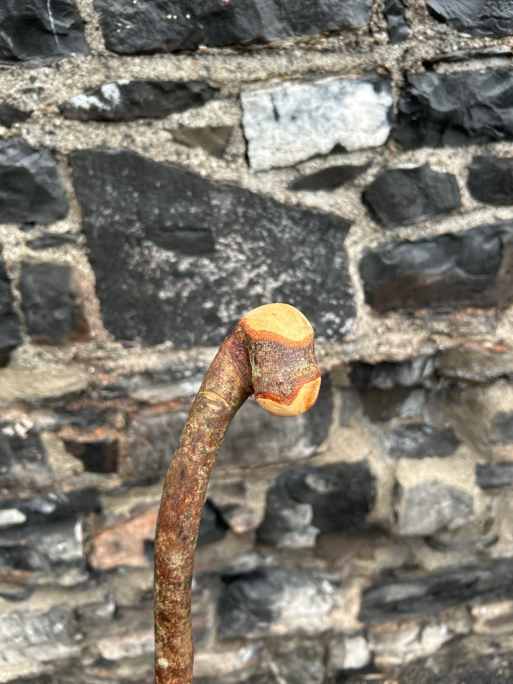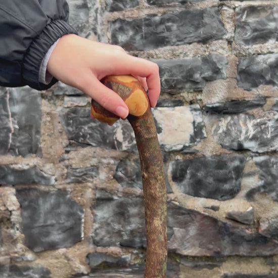 This hazel walking stick has a strong, raspy natural finish along the shaft, giving it a rugged grip and proper countryside character. The small knob head sits comfortably in the hand, making it a solid choice for hikers or anyone who prefers a stick that’s light but still strong. At 99 cm and 340 grams, it’s easy to carry while still offering real support. A true piece of Ireland — simple, tough, and made from honest hazel wood. As always, you’ll receive the exact stick shown in the photo, and if you need it shortened, just leave the details in the order notes at checkout.