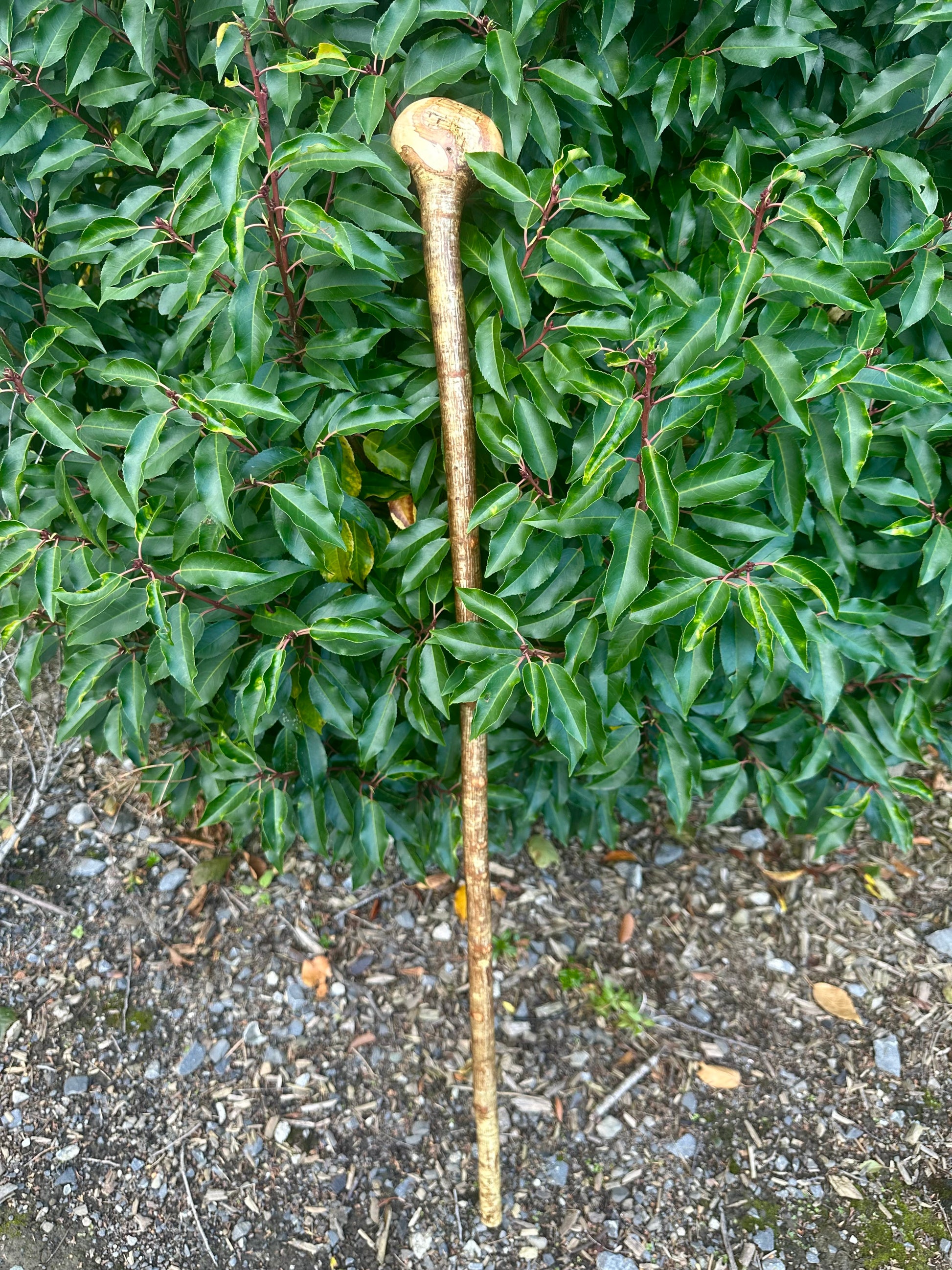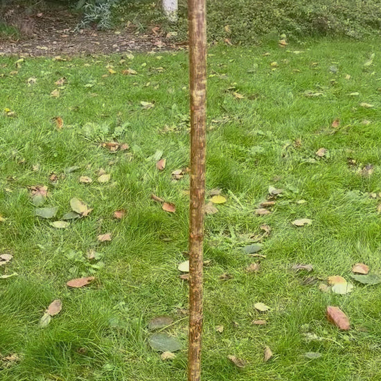 This one-of-a-kind Irish hazel walking stick features a smooth round knob handle and a warm, natural finish that highlights the wood’s gentle grain. At 97 cm (38 inches), it's a comfortable mid-sized stick — perfect for everyday use, casual walks, or display. The exact stick shown in the photo is the one you will receive. If you'd like it shortened, just let us know how much to trim in the order notes at checkout and we’ll adjust it for you.