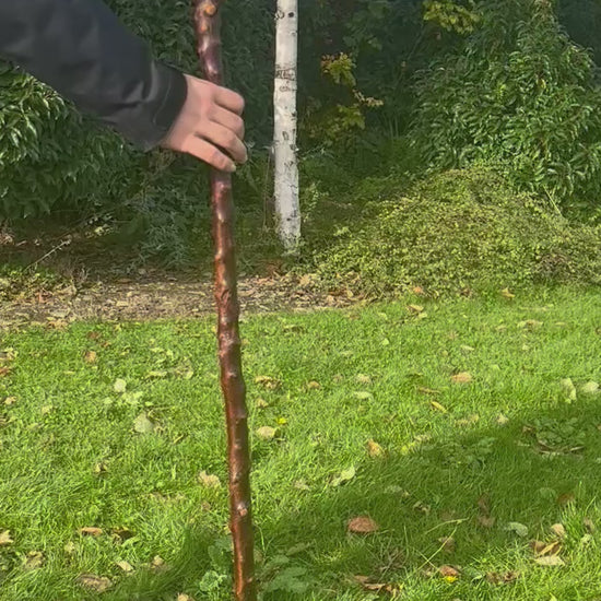 This one-of-a-kind Irish hazel walking stick features a naturally formed thumb handle that fits snugly in the hand for extra comfort and control. The hazel shaft is full of natural curves and warm grain, giving it a rustic yet refined look. At 106 cm (41.7 inches), it’s ideal for taller walkers or those looking for a longer, lightweight stick. The stick you see in the photo is exactly the one you will receive. If you'd like it shortened, simply tell us how much to trim in the order notes at checkout and we’ll adjust it for you.