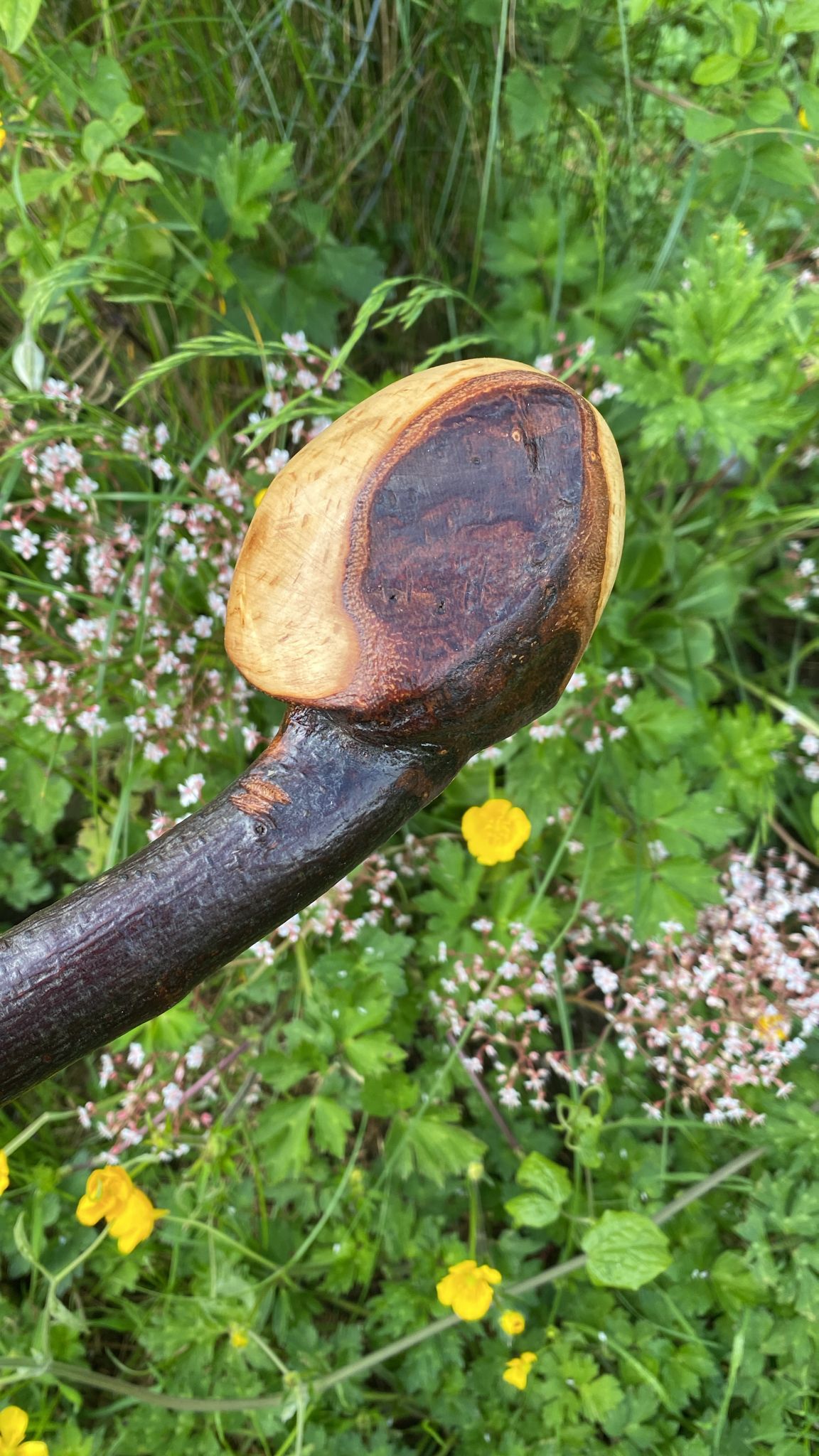 Sleek black birch walking stick crafted in Ireland, combining smooth finish with reliable strength. Naturally elegant, award winning Irish stick craft.