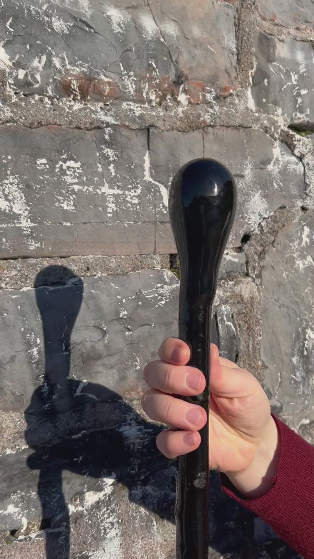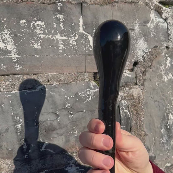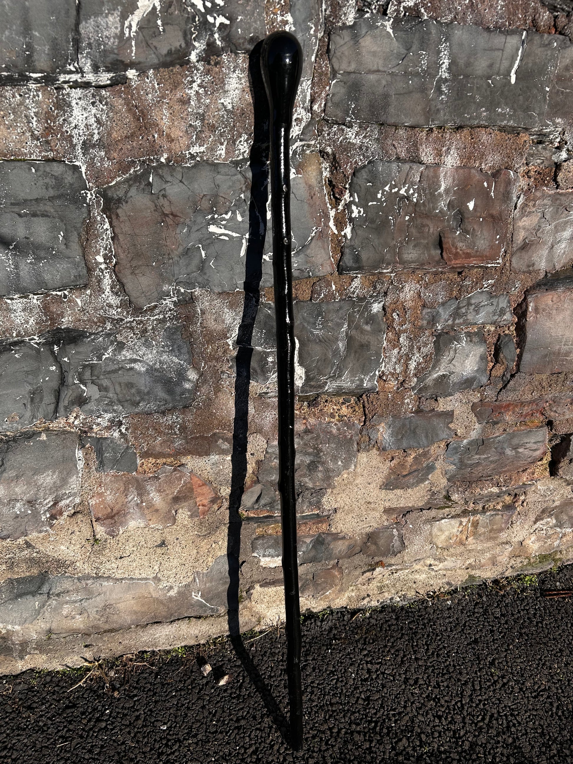 This striking two-piece walking stick features a hazel shaft painted black and a rounded spalted beech knob head, also painted black for a bold, unified look. The spalted beech adds natural patterning beneath the finish, giving the head real character and depth. The hazel shaft is light but strong, making this a great stick for walking support or hiking. At 99 cm / 39 inches, it’s well balanced and easy to handle. As always, you’ll receive the exact stick shown in the photo, and if you’d like it shortened, just leave your preferred length in the order notes at checkout.